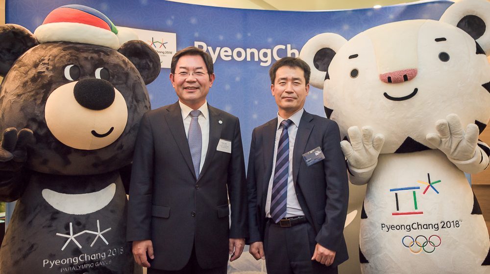 Winter Olympics fever is already in the air, and it’s most palpable at Korea Tourism Organization as the ski resorts of the Gangwon Province prepare to host the PyeongChang 2018 Winter Olympic & Paralympic Games in February and March 2018.Five of South Korea’s most popular ski resorts travelled to Australia for the Snow Travel Expo on Sunday 21 May in Sydney (and Melbourne on Sunday 28 May), taking the opportunity to showcase their winter tourism offerings to travel trade and media at a dedicated Korea Tourism Ski Roadshow on Monday 22 May at L’Aqua in Darling Harbour.Alpensia, Daemyung Vivaldi Park, High 1, Phoenix Park and Yongpyong are among the most prestigious resorts in the country, with three of them (Alpensia, Phoenix Park and Yongpyong) directly involved in hosting the Winter Olympics. All of them are looking forward to the once-in-a-lifetime exposure and interest in skiing Korea that is sure to be generated by the Games, furthered by the Korean government’s massive investment in infrastructure, including a high-speed rail link from Seoul to the Olympic hub in PyeongChang. JTB Australia staff with 2018 Pyeongchang Winter Olympics Mascots Soohorang and BandabiWinter sports are a natural fit for this country that is 70 per cent covered by mountains, with snow brought from Siberia. It is only the third time an Asian nation will have hosted the Winter Games. Both Director Tai Hwan Kim from Sydney’s Korea Tourism Organization office and Consul General for Korea, Sangsoo Yoon, expressed their delight at the increasing tourism exchange between Korea and Australia.CoSport, the PyeongChang 2018 Olympic Winter Games Authorised Ticket Reseller for Australia, also joined the roadshow, alongside the likes of JTB Australia, Skimax, Korean Air and Asiana, to share the range of packages available for both consumers and corporate groups.Guests also had the opportunity to have their photo taken with the Games’ mascots, Soohorang the White Tiger and Bandabi the Moon Bear. Grace Lech of Grace Club Travel, winner of Korean Air prize, with KE Director, Sung Hoon KaLead image: Consul General Sangsoo Yoon & Director Korea Tourism Organization Sydney office, Mr Tai Hwan Kim