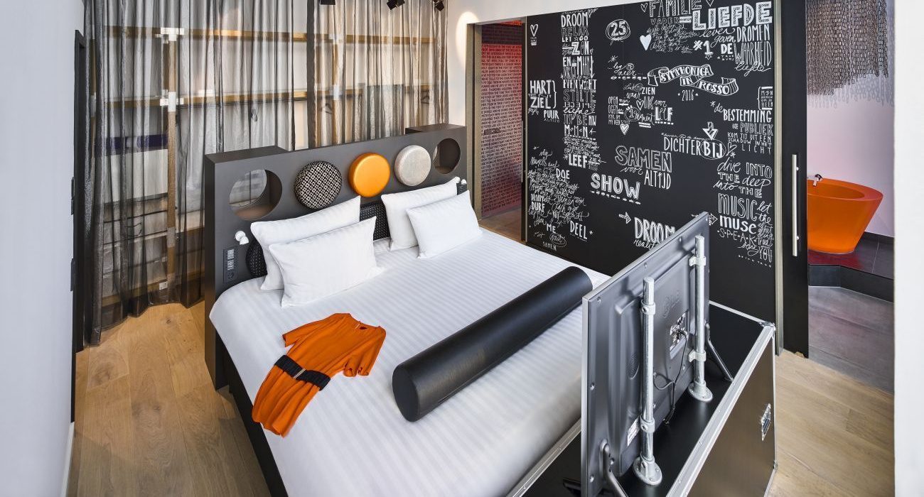 Time to look at new luxury hotels in Amsterdam. There are three, all well worth international note in today’s world of changing demand, and more and more differentiation. First in alphabetical order is Hyatt Regency Amsterdam, replacing what was a children’s hospital on Sarphatistraat, overlooking that canal, has a truly “wow” ground floor that can be summed up as green and authentic, inside and outside, and fabulous eating and drinking with more than hints of Indonesia. Mama Makan restaurant, for instance, even has exotic spices on its breakfast buffet and you can have the Indonesian national dish, nasi goreng, any time you want, breakfast, lunch and dinner.Interestingly the Dutch East India Company (VOC, in Dutch) was set up specifically to import spices from the East and it established a base in 1619 in what is now Jakarta – half a century later VOC was the world’s richest private company, with over 150 merchant ships, 40 warships, 50,000 employees, its own 10,000-strong private army and paying 40 per cent to its investors, who were predominantly German. I wonder what those farsighted internationalists would think of this fascinating six-floor hotel, which opened this very April? They would surely applaud local architect Van Dongen-Koschuch’s tile exterior, with some facets echoing the surrounding trees of quiet Sarphatistraat, and one real, living tree, in the building’s indent, which forms a terrace.And like me, they would love what CONCRETE, another Dutch company, has done for the public areas inside. Go in via the main entrance, which interestingly has a prominent Free Wi-Fi sign on its glass wall, and you see to your right a long living wall in perfect condition. Everywhere you turn there is living greenery, hanging down or set in planters. Go along to Mama Makan, which is invariably heavy on local eaters-and-drinkers, and there are 150 enormous white paper lanterns hanging overhead, one, I am told, for each seat.Locals are also using this luxury hotel’s lobby as a casual meeting and work place. The 20-seat communal table has inset sockets, and of course that free connectivity. There is a manned bar, and a grab-and-go deli with the most superb bottles of limoncello. Gosh, you could take in calories all day and all night here. I have not mentioned Mama Makan’s breakfast salad, with poached egg atop almonds, broccoli, cheese and spinach, or, in your room, anything you want, including breakfast, 24/7 (choose a Crave Express item and even Mie goreng comes in 20 minutes). The savvy, by the way, probably choose a room overlooking Singel Canal, and definitely one with access to the two-floor, light and airy Regency Club. The keen-to-learn, too, really appreciate that using the 24/7 Lifefitness gym they get Wikipedia on their screens, which means you can learn even more about the East India Company and the background to the Dutch spice trade and so much more.Next up in this trio of new Amsterdam hotels, Jaz in the City, is a bit of an anomaly. First, it spells ‘jazz’ in a weird way. Secondly it is not actually in the city centre. Next, there are some in that centre who still have not heard of it – and it is now 15 months old – but it does extremely well, thank you. This is a 21st-century luxury hotel that is absolutely right for its market sector, which is corporate plus events plus fresh air, all paired with extraordinarily nice and willing staff, led by the Jaz Brand Leader, Marjolein Bruschke. So, where is it? Think the Zuidoost suburb, 200 yards from Bijlmer ArenaA and Strandvliet stations, both of which have masses of 15-minute trains to Amsterdam Central Station. It is part of an open-square development, the other sides being formed by an office block for national headquarters (behind is a massive Deutsche Bank tower), and the Johan Cruijff Ajax Arena and the Ziggo Dome theatre.Now the Arena, which hosts some mega-events as well as sports events, seats up to 68,000 and whenever there is an Ajax home game the activity spills into that open square and into the hotel and dozens of relief staff come in to serve after-game beer. The Dome has a 17,000 capacity and has continual big-name tickets: coming up in September, for instance, are Neil Diamond on Monday 4th and, on 22 Friday, John Legend. All this happening means lots of business for the 11-floor hotel. It has 258 rooms and miraculously runs with only 50 full-time staff, with others brought in as required. Marjolein Bruschke calls her Housekeeper the Dream Maker, and the black T-shirted youngsters who man the circular metal desk in the lobby are Smart Operators.When the hotel opened it motivationally recruited by inviting applicants to jam with bits of kitchen equipment – as its name implies, this is a hotel integrally linked with music. Blown-glass threads running along upper corridor ceilings are like musical waves; bedrooms have big wall decorations of unmarked CDs hanging one above the other and moving gently to give kaleidoscopes of colour, and you may have a real guitar. But, and this is new luxury; in traditional terms these rooms are minimalist, with open climbing frames for extra hanging and storage, and plain wood floors and concrete ceilings deliberately exposing utility pipes (view the video, below, to see a superb top-floor terrace room, and note the stunning dayglo orange basins and bath). I want to meet designer Michaela Reichwald, obviously a nonstop creator.Another imaginative lady is the events producer, who makes sure there is, every night, a different live act in the main eatertainment venue, Rhythms Bar + Kitchen (above is Oliver Twist, the resident DJ the night I was there – a few days later, the regular Sunday breakfast vibe was to be the Eduardo Blanco Jazz Trio). This anonymous lady also brainstormed with the Jaz Brand Leader (the GM) and came up with the idea of quickie makeups, offered to the red-carpet-dressed females coming to events in the arena or theatre. And this, in 