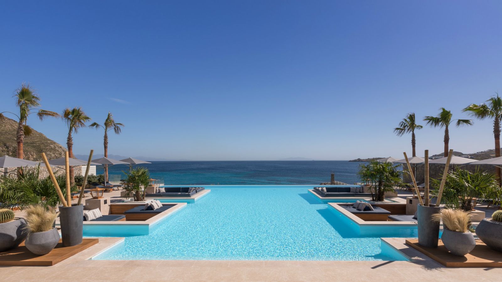 Santa Marina Resort & Villas on the super-chic Greek island of Mykonos, has completed a three-year, multi-million-Euro refurbishment. Idyllically located on a secluded peninsula, just three kilometres from town, the privately owned resort has unrivalled views across the blue sea of the Aegean. In addition, the resort – which comprises 100 rooms and suites and 14 villas – has the only private sandy beach on the island.The refurbishment has seen the total transformation of all rooms and suites, with seven now having private pools with lush gardens and the rest offering private sea view terraces. The interior style by Argentinean designer Silvina Macipe Krontiras is graceful, giving a feeling of warmth, luxury and tranquillity punctuated with art and finishing touches inspired by seaside resort living.The addition of a large infinity pool and OASIS lounge for adults only with views of the bay gives the resort another dimension for those looking for a more relaxed vibe on the well-known party island. Furnished with comfortable sun loungers and an expansive sunken area with soft seating, it’s a great place to relax and sip a cocktail in the afternoon sun. The new area complements Santa Marina’s existing restaurant and bar, the Colonial Pool Restaurant and Bar which serves all-day Mediterranean cuisine. The second pool is ideal for families and has a nearby children’s Lappset playground.The resort is also the location of the world’s first Buddha Beach Bar. Offering exceptional Mediterranean and Greek fusion cuisine, as well as celebrated signature Buddha Bar specialties and cocktails, the scene constantly evolves throughout the day and night. During the season, there is a mix of famous chefs, mixologists and DJs, not just for hotel residents to enjoy but also guests from visiting yachts.The new Ginkgo Spa combines a serene aesthetic with flowing water to create a feeling of tranquillity. There are five large treatment rooms for therapists to deliver soul-enriching and body-pampering treatments with ESPA and Phytomer products, including a couple’s massage signature treatment. The new hammam is a highlight of the spa with its mosaic-tiled décor and specialist exfoliation and ancient cleansing rituals that utilise heat for therapeutic purposes. The relaxation area, encircled by shallow waters, long flowing curtains and plush beds, provides a quiet pre- and post-treatment sanctuary. Located within the spa is the new gym, which overlooks the infinity pool and comprises state of the art Technogym equipment.A major addition over the last three years to the hotel’s accommodation offering are 14 villas with pools, including three new villas as part of the extensive refurbishment. Ruby, Lapis Lazuli and Sapphire, all with private pools, have been decorated in a similar bespoke style as the new rooms with an elegant and relaxing decor. The resort’s finest villa in terms of design, location and size is Villa Horizon (six bedrooms) – the ideal place for large families or a group of friends.The island of Mykonos, famous for its white-washed villages, cosmopolitan nightlife and sparkling blue sea, sits at the southern end of the Cyclades archipelago and is one of the smallest of the Greek islands. Now considered one of the most renowned tourist destinations in the country, Santa Marina Resort & Villas offers a total escape from the lively crowds and access to pristine sands, secluded coves and hidden bays which are waiting to be explored.
