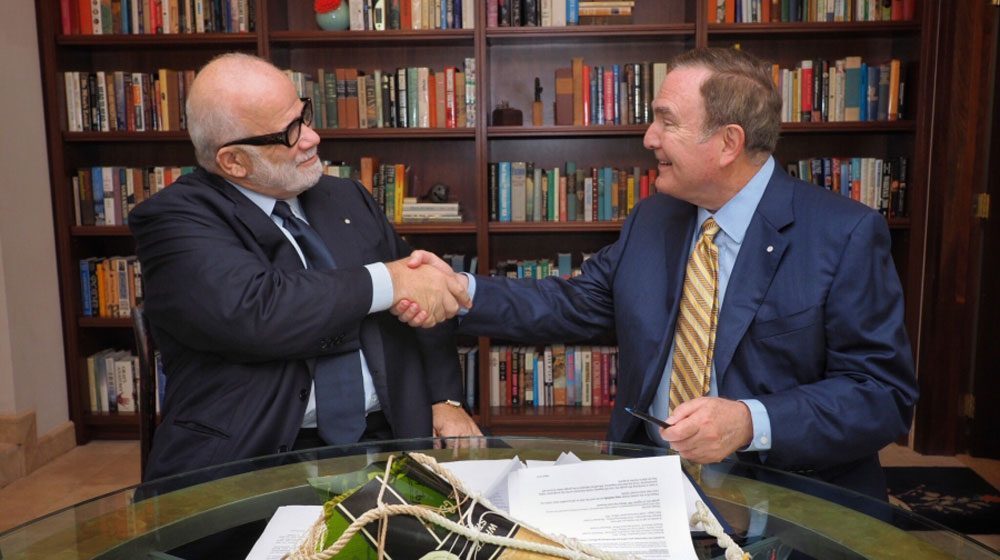 Deal done – Silversea Cruises Manfredi Lefebvre d’Ovidio (left) and Royal Caribbean’s Richard Fain sign off on the deal.RCL highlighted a range of points as part of its “strategic rationale” for the deal, including ramping up capacity growth in the “burgeoning luxury and expeditions markets”, diversifying its current portfolio, leveraging the global footprint of the combined companies and building on “significant synergies”.
