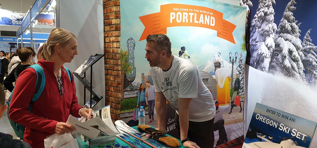Aaron Liersemann from Oregon’s Mt Hood Territory and the Australian Travel Portland reps have been busy attending ski shows and meeting and training agents for the past two weeks getting the word out on Oregon’s two ski areas, Mt Bachelor (located near Bend in Central Oregon) and Mt Hood (just 90 minutes from downtown Portland).Together the two areas have an extensive range of runs for beginners through to professional skiers and snowboarders.They also offer snow shoe tours, sleigh rides, cross country and snow mobiling. And at Ski Bowl, one of the three resorts on Mt Hood, 600,000 LED lights illuminate the resort to make for some of the best night time skiing and “cosmic” tubing.Liersemann has also found that Australians are intrigued by the opportunity to ski with the locals avoiding the lengthy lift lines at some of the larger resorts. The prospect of no sales tax was also a winner making the ski and the apres ski experience far more affordable.