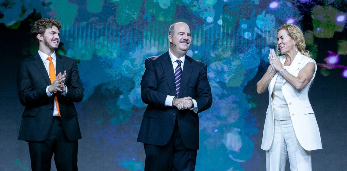 Lead image: A family affair – At the Virtuoso Travel Week 2021 Gala, Matthew D. Upchurch, Chairman and CEO, Virtuoso and Jessica Hall Upchurch, Vice Chair and Sustainability Strategist, Virtuoso, with son Clay Upchurch.