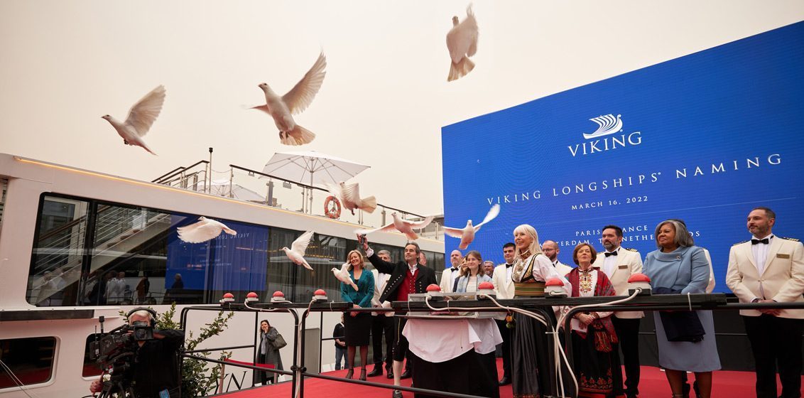 Viking has welcomed not one, not two, but eight new river ships to its fleet during a celebration in Paris last week. In unison, eight Godmothers christened the vessels, including senior executives from luxury travel networks, Virtuoso and Signature Travel Network.Of the eight new Viking Longships, four ships – Viking Fjorgyn, Viking Kari, Viking Radgrid and Viking Skaga – are built specifically to navigate the Seine River and bring guests to the heart of Paris with an exclusive docking location at Port de Grenelle, just a short walk from the Eiffel Tower. The four additional ships – Viking Egdir, Viking Gersemi, Viking Gymir and Viking Hervor – will sail on the Rhine, Main and Danube rivers.Subscribe to LATTE Cruise’s free eNewsletter to keep up to date with everything in the luxury cruise space.The naming of the new river ships comes as Viking continues its 25th anniversary and a year of multiple milestones. In January 2022, the company launched Viking Expeditions and its first Polar Class vessel, Viking Octantis. By the end of the year, Viking will have also welcomed a second identical expedition ship, Viking Polaris, as well as two new identical ocean ships, new purpose-built vessels for the Nile and Mekong rivers and new Mississippi River voyages.“As we mark 25 years of sailing the iconic waterways of the world, it is always a proud day when we welcome new ships to our fleet and offer more opportunities for curious travellers to explore the world in comfort,” said Torstein Hagen, Chairman of Viking.