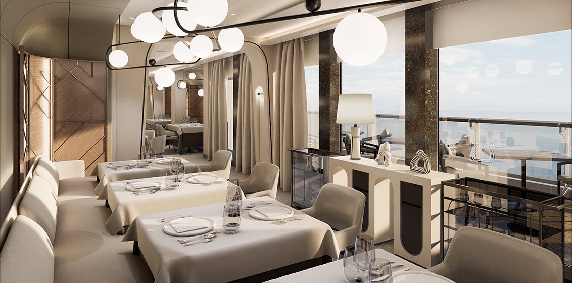 - Med Yacht Club – A relaxed celebration of the flavours, ambience, and dolce vita of the Mediterranean. Inspired by sailings across crystal clear waters, the Med Yacht Club is influenced by sophisticated, beachside Mediterranean restaurants, embracing the varied cuisines of the region and infusing tastes and textures of Italy, Spain, Greece, and France. Wines will showcase the rich vineyards of the Mediterranean with fresh juices and cocktails honouring regional ingredients.