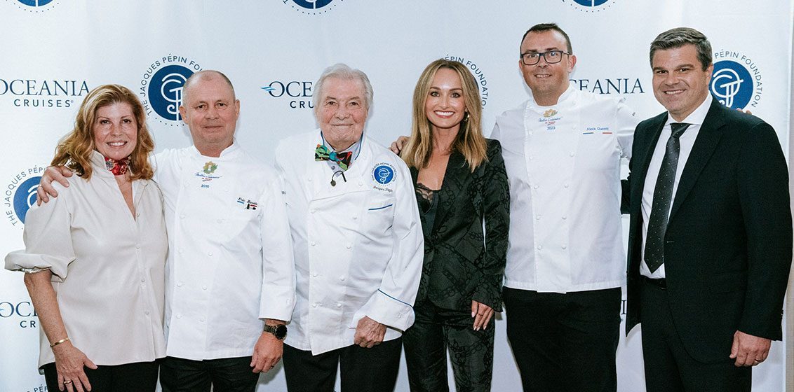 “Having set sail with Oceania Cruises as Godmother of Vista, I immediately connected with the line’s extraordinary commitment to food and the entire dining experience,” De Laurentiis commented.“The people were so warm and welcoming; the entire onboard experience was incredibly inviting, and everyone truly starts to feel like family. Oceania Cruises’ mission aligns perfectly with my own. Travel and food are the ultimate ways of bringing people together – to savor unique flavours, experience different destinations and create shared memories. I couldn’t be more excited to expand my relationship with Oceania Cruises.”Co-Chairs De Laurentiis and Pépin will work closely with Oceania Cruises’ two Executive Culinary Directors and Master Chefs of France, Chef Alexis Quaretti and Chef Eric Barale, who will play key roles in developing the scope of the Culinary Advisory Board.“Food has forever been a universal language, transcending boundaries and bringing people, literally, to the table,” said Frank A. Del Rio, President of Oceania Cruises. “With a legacy deeply rooted in family and a passion for gastronomy, it seems only fitting that Oceania Cruises furthers its relationship with Giada. I am thrilled that she and our culinary patriarch, Jacques, will helm our Culinary Advisory Board to further evolve and innovate, redefining the boundaries of the onboard dining experience.”Lead image, from left are: Claudine Pépin, Chef Eric Barale, Chef Jacques Pépin, Giada De Laurentiis, Chef Alexis Quaretti and Frank A. Del Rio.