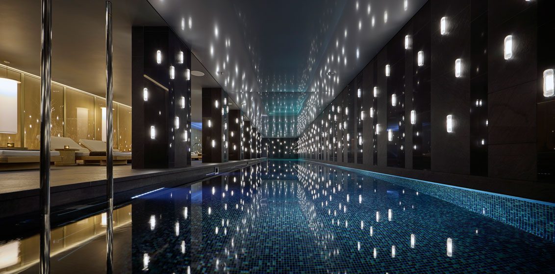This best of the East and West can also be found within the hotel’s public spaces – the reception, atrium, Akira Back restaurant, ABar Lounge, 14-seater chef’s table Dosa, private dining rooms and spa – all by Tokyo based design agency Curiosity who have used colour and texture to great effect.The large sculptural lobby and reception to the spa boasts rare green Ming marble to reflect the green spaces of Hanover Square, Berkeley Square and Green Park, whilst the dining spaces have been inspired by “a walk in the park” and the natural elements of ‘wind’, ‘water’, ‘earth’ and ‘fire’, reflected through carefully choreographed lighting, suspended structures and metallic ceilings.
