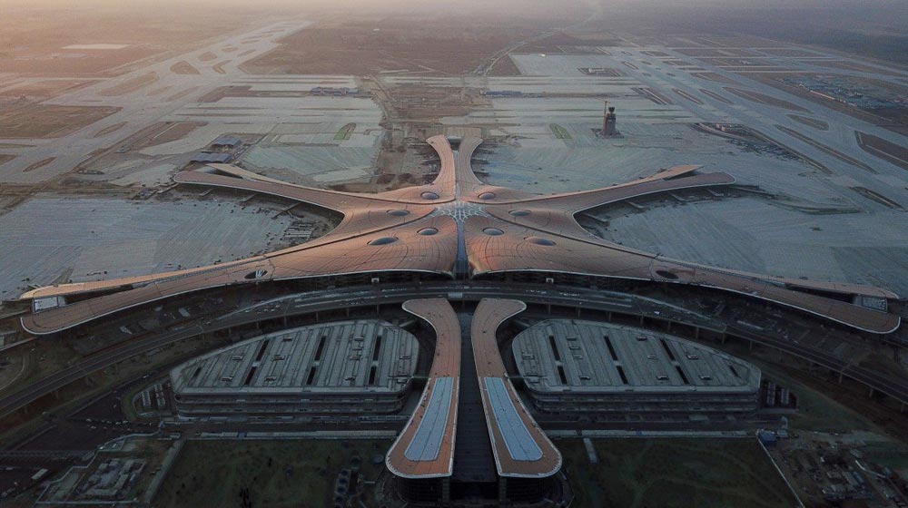 Beijing Daxing International Airport (PKX), also known as Beijing New Airport, was officially opened this week in China. The new facility features a starfish shaped terminal with five concourses and a whopping seven runways. It is billed as the “biggest airport in the world” and is the second international airport of Beijing along with Beijing Capital International airport.