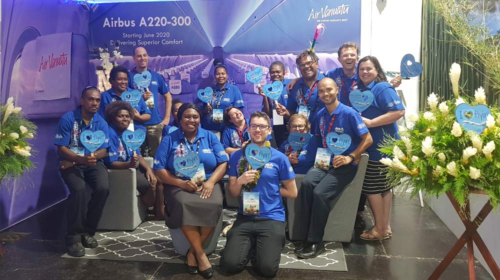 Air Vanuatu this week welcomed the first visit of the Airbus A220 ahead of the aircraft joining the airline’s fleet in June 2020. Air Vanuatu is the launch customer in the South Pacific region for the A220, the most advanced airliner in its class, featuring new manufacturing technologies, reduced fuel consumption and carbon emissions, lower operating costs and a more attractive passenger cabin.